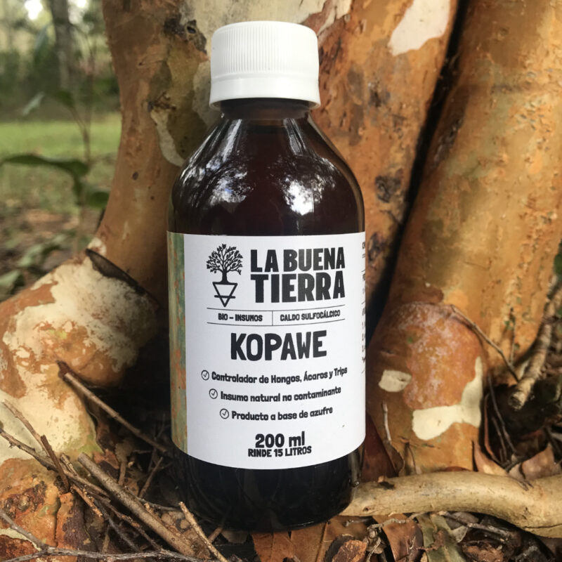 KOPAWE es un controlador de plagas y enfermedades de tipo Caldo Sulfocálcico, capaz de manejar de forma ecológica hongos, ácaros y trips.